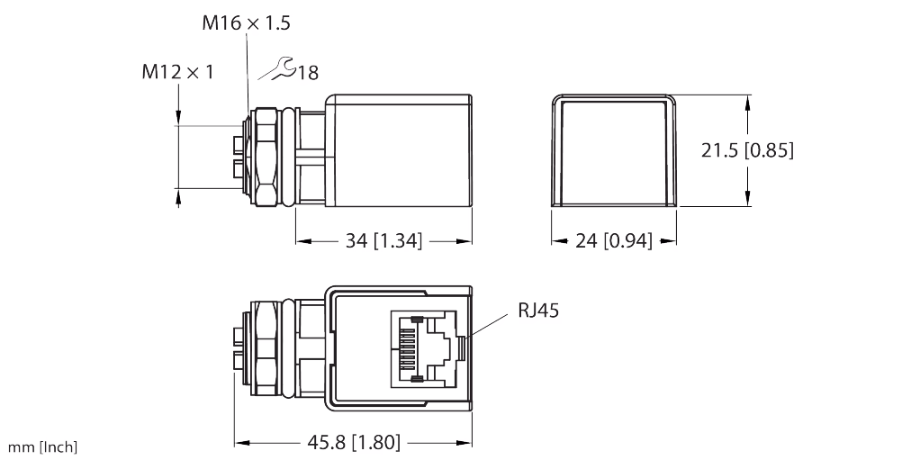 | Connector A | Female, M12×1, Straight, X-coded |
