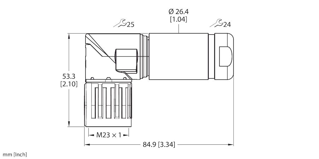 Connector AAngled, M23×1, Male