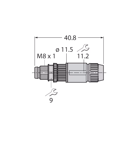 Connector AM8×1, Male, Straight