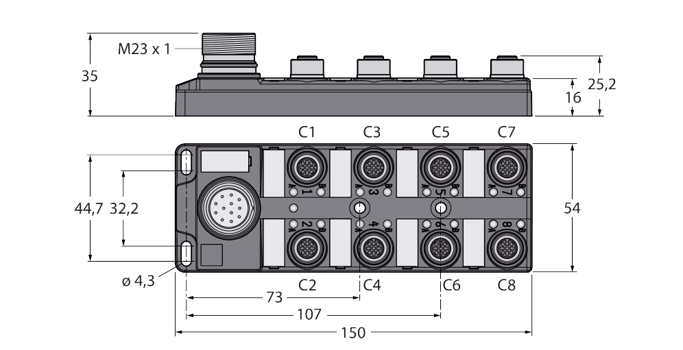 Passive Actuator/Sensor Box, M12 ? 1 TB-8M12-4P2-CS12T
